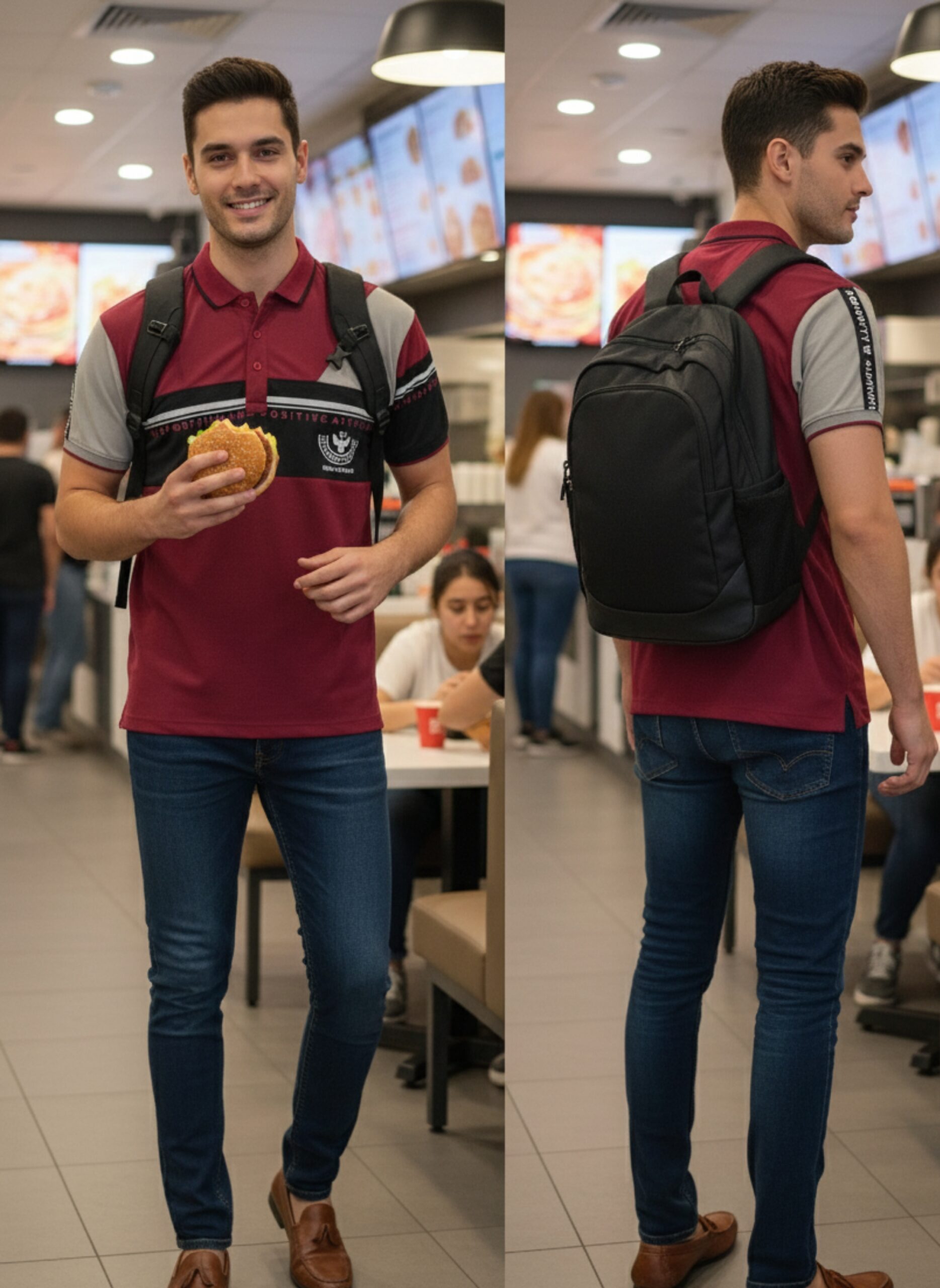 Elevate your casual wardrobe with this stylish colorblock polo T-shirt crafted for comfort and a modern look. Designed with a maroon base, grey sleeves, and a black horizontal chest stripe with subtle detailing, this T-shirt is perfect for college, casual outings, or everyday wear. The polo collar adds a refined touch, while the soft fabric ensures all-day comfort.