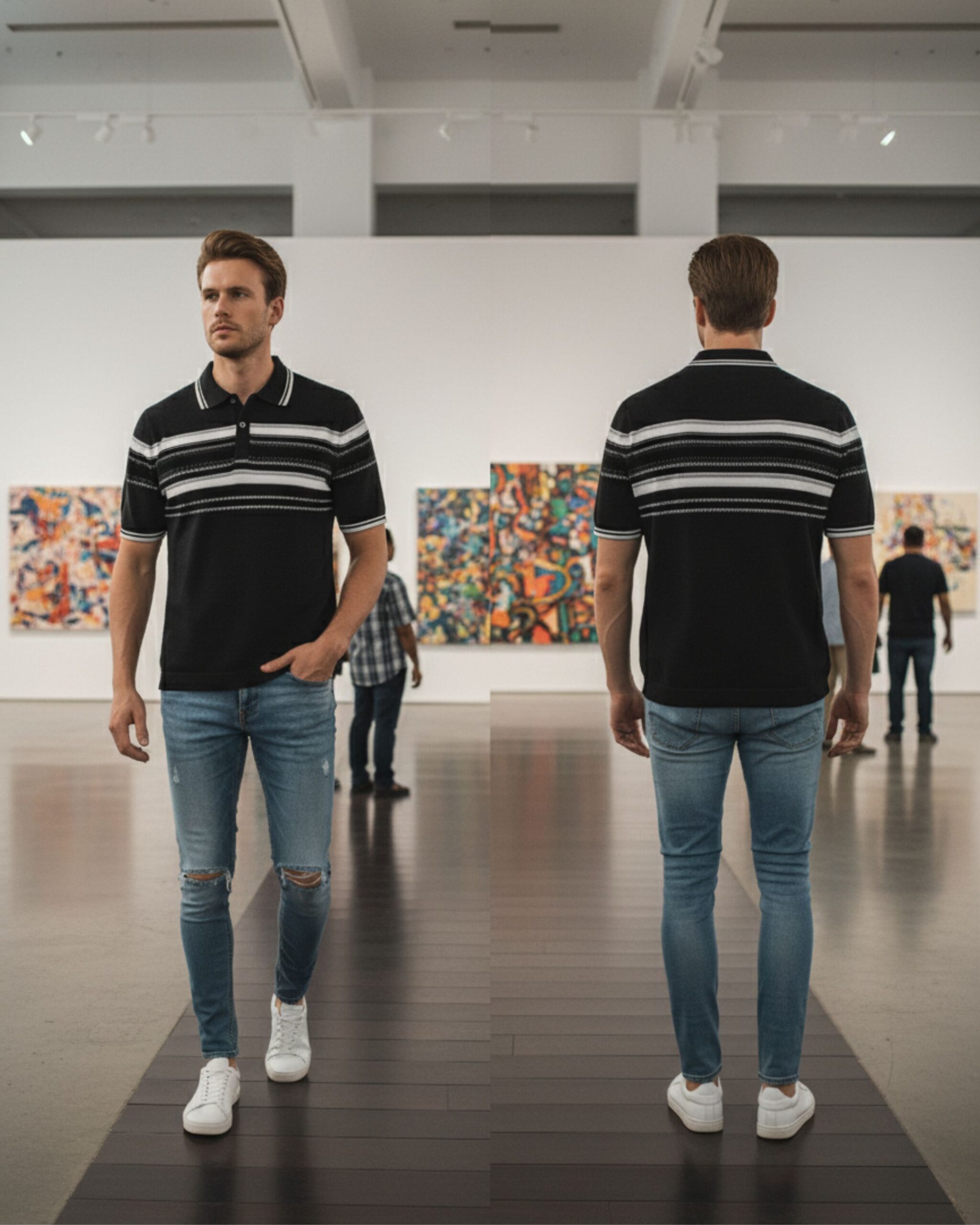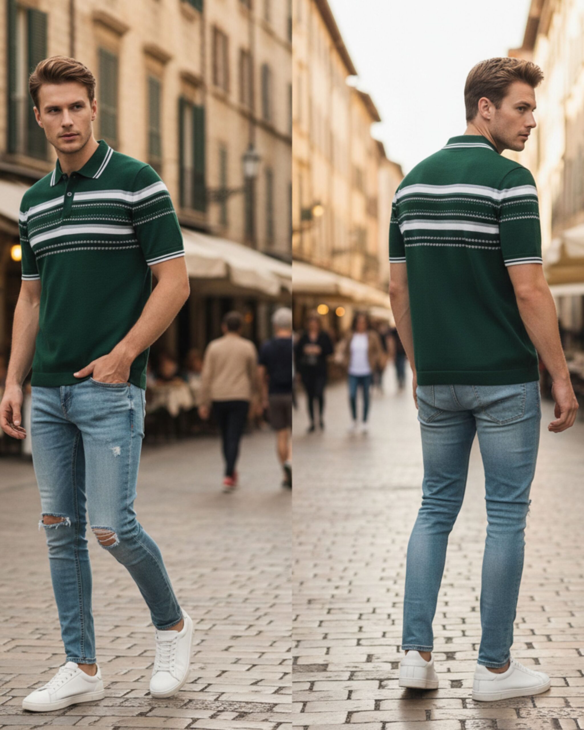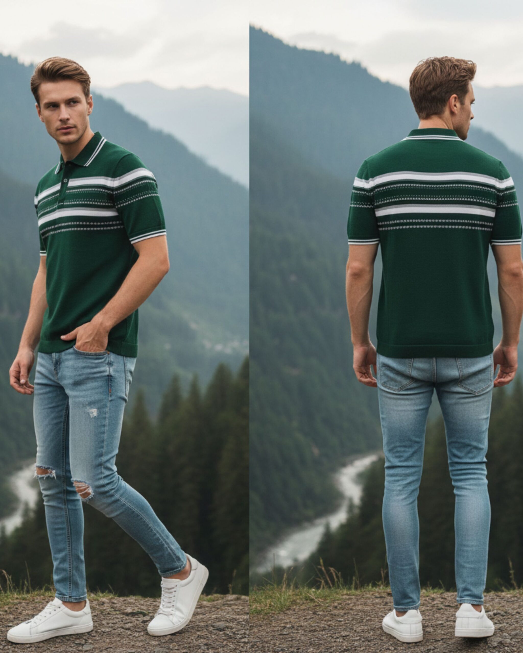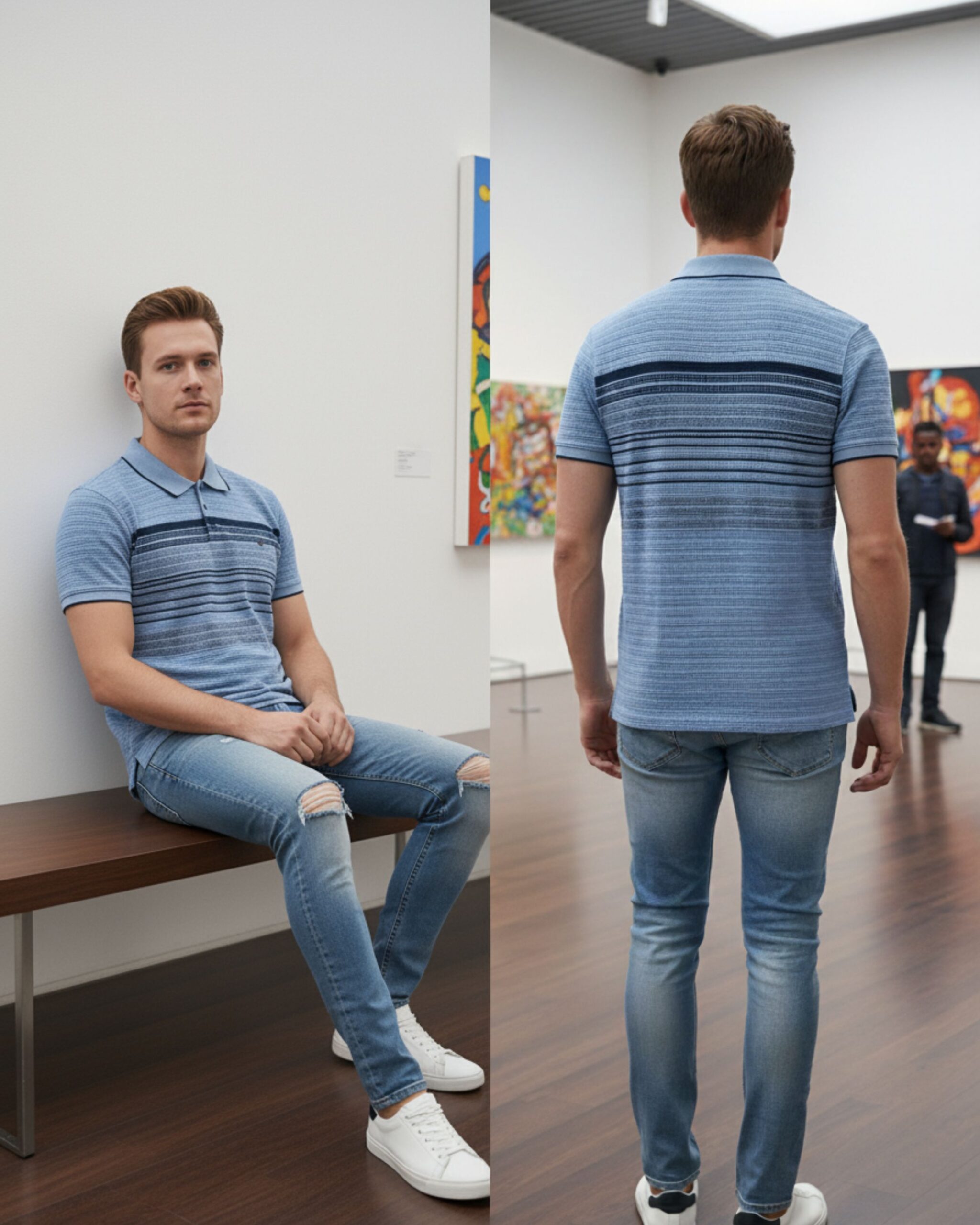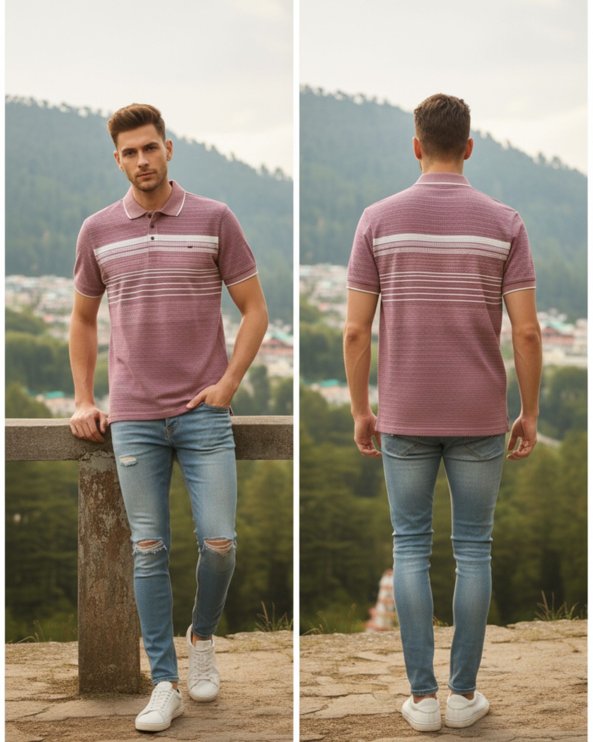 Upgrade your everyday style with this premium light blue polo t-shirt. Designed with finely detailed horizontal stripes and a neat button placket, it delivers a fresh, modern look that pairs effortlessly with jeans or chinos. The breathable cotton-blend fabric ensures all-day comfort, making it an ideal choice for outings, weekend wear, or casual office days.